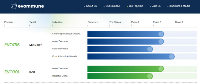 | | 에보뮨 파이프라인 현황 (자료=에보뮨) |