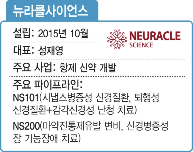 내년 코스닥 상장 추진...신경병성 대장질환 등 신약 추가 개발 뉴라클사이언스는 내년 코스닥 상장도 추진한다. 뉴라클사이언스는 누적 투자 유치금액은 690억원 정도로 알려졌다. 뉴라클사이이언스는 코스닥 상장 후 변비와 변실금 등 신경병성 대장질환의 치료를 목표로 하는 치료제(NS200) 등의 개발에 속도를 낼 예정이다.