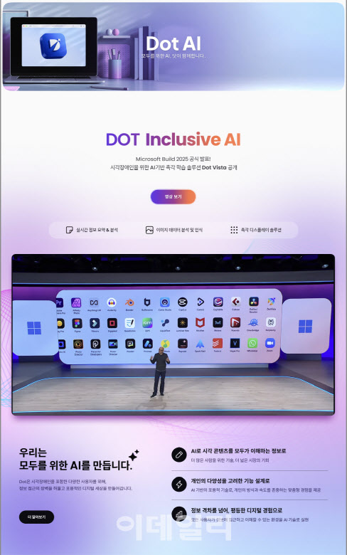 닷의 최신 기술적 성과로 인공지는(AI) 기반 이미지 변환 솔루션 닷 비스타가 꼽힌다. 옥스퍼드 대학교, 보스턴 대학 등과 컨소시엄을 구성해 개발 중인 이 기술은 시각장애인이 경제학, 통계학 등 기본 과목을 공부할 수 있는 길을 열어주고 있다.