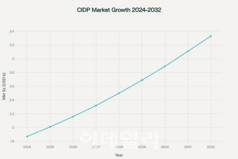 카인사이언스, 임상적 경쟁력 살펴보니 CIDP는 매우 희귀한 자가면역 신경 질환으로, 글로벌 시장 규모가 2024년 18억 7000만 달러(2조 5985억원)에서 2032년 33억 3000만 달러(4조 6273억원)로 연평균 7.5% 성장할 것으로 전망된다.