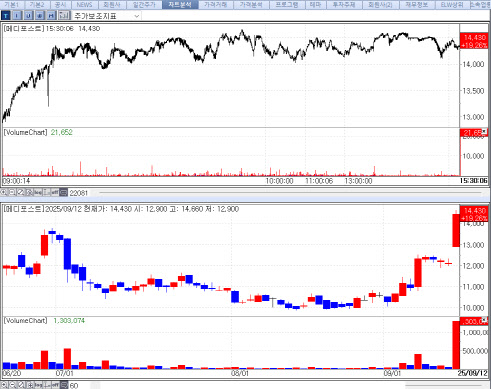 |  | 메디포스트의 최근 주가 추이. (자료=KG제로인 엠피닥터) |