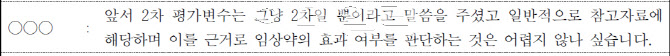 이어 식약처는 “1차 유효성 평가변수 변경이 타당하지 않아 2차 평가변수로 분석하게 될 경우 추가적으로 고려해야 할 사항이 있으면 말씀 부탁드린다”고 발언하자, 참석했던 위원은 “앞서 2차 평가변수는 그냥 2차일 뿐이라고 말씀을 주셨다. 일반적으로 참고자료에 해당한다. 이를 근거로 임상약 효과 여부를 판단하는 것은 어렵다”고 잘라 말했다.
