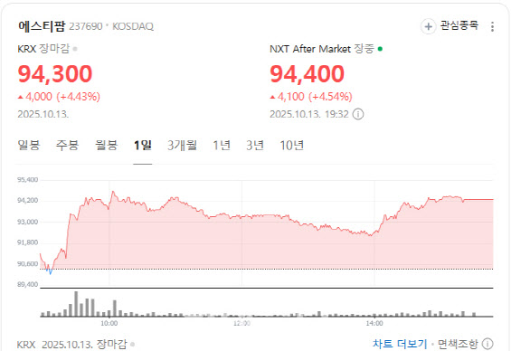 U.S. ‘Biosecurity Act’ Nears Final Passage ST Pharm rose 4.43% to close at 94,300 won, as investors bet that the passage of the U.S. BIOSECURE Act in the Senate would benefit Korean CDMO companies by restricting Chinese rivals’ access to the American market.