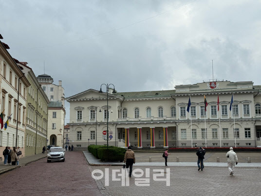 |  | 빌뉴스 대학교(왼쪽)과 나란히 위치한 리투아니아 대통령실(오른쪽)(사진=임정요 기자) |