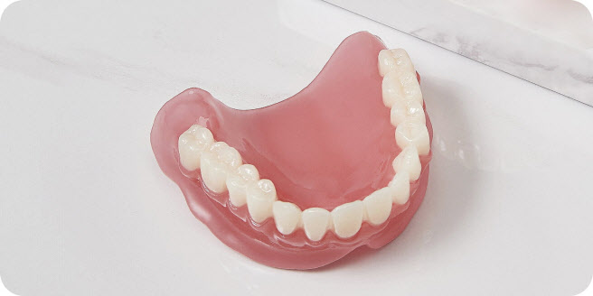 | | 그래피의 3D 프린터용 치과용 레진 제품군 THD(TERA HARZ Hard Denture)로 제작한 틀니의 모습 (사진=그래피) |