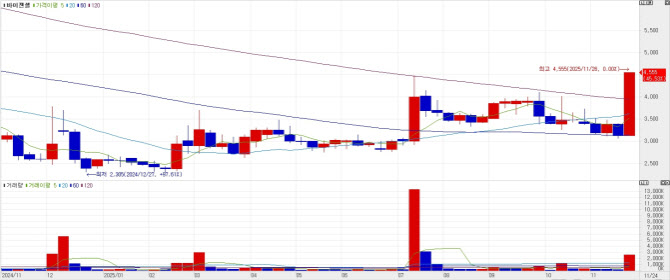 케어젠은 앞서 이달 말까지 습성 황반변성(wAMD) 치료제 CG-P5의 1상 임상결과보고서(CSR)를 발표하겠다고 밝힌 바 있다. 이에 따라 이달 중순부터 지속 상승, 지난 10월30일 6만2500원이었던 주가가 지난 25일 8만3600원까지 올랐었다.
