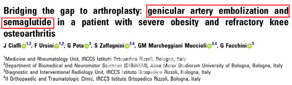| | ‘인공관절 수술로 가는 간극을 메우다: 고도비만·난치성 무릎관절염 환자에서의 무릎 동맥 색전술과 세마글루타이드’라는 제목으로 게재된 임상 사례 보고. 색전술에 사용된 제품이 ‘넥스피어-F’다.(제공= 넥스트바이오메디컬) |