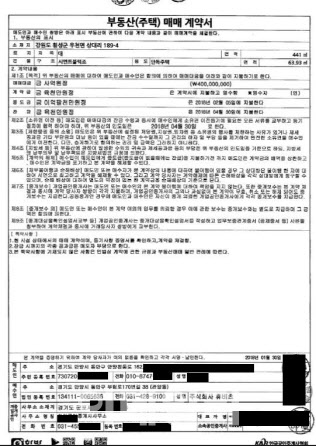 | | 휴비츠와 임직원 가족간 강원도 횡성군 부동산 매매 계약서. (사진=소액주주 대표) |