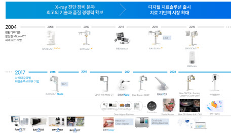 치과·치과기공소 모든 작업 디지털화 성공 레이는 국내 치과용 영상 진단 분야의 선두주자로 여겨진다. 레이는 치과용 2차원 엑스레이(X-ray) 및 3차원 컴퓨터단층촬영장치(CT) 등 디지털진단 시스템을 보유하고 있다. 레이는 3차원 스캔, 치과용 캐드, 3차원 프린팅 등 디지털 치료 솔루션도 갖추고 있다.
