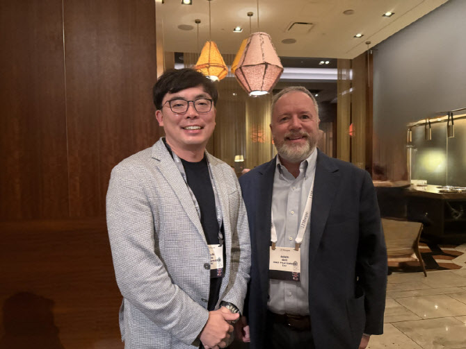 | | 이슬기 디앤디파마텍 대표(왼쪽), 아담 벨(Adam Bell) 뉴랄리 부사장(오른쪽). (사진=임정요 기자) |