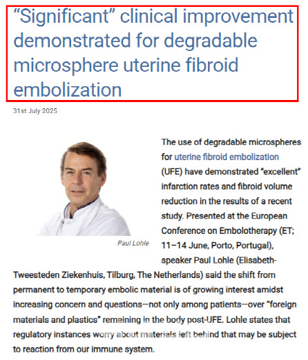 이번 임상에서 분해성 입자 사용에도 불구하고 효과가 기존 제품과 동등하거나 그 이상임이 확인되면서, 환자의 불안을 줄이고 자궁 및 난소 기능 보존 가능성을 높일 수 있다는 평가가 나온다.