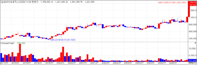 | | 삼성바이오로직스 차트(자료=KG제로인 MP닥터) |