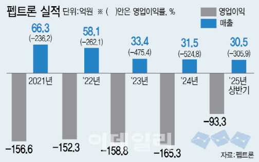 펩트론의 지난해 매출은 32억원, 영업손실 규모는 165억원이다. 연구개발용 펩타이드를 연구소 및 대학에 공급하거나 위탁개발생산(CDMO) 등으로 매출을 냈지만 연구·개발(R&D) 비용이 더 커 상장 이래 지속적으로 적자상태다. 업계 추측대로 루프원이 매출 350억원대를 달성하면 펩트론은 50억원 이상의 매출을 추가로 손에 쥐게 된다.
