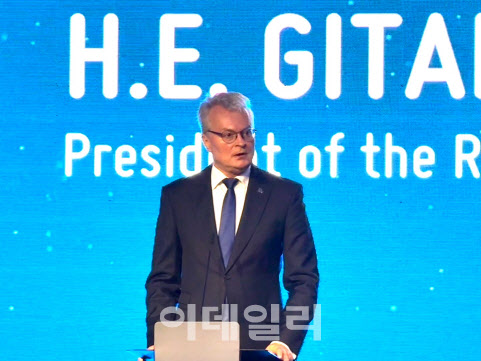 | | 기타나스 나우세다(Gitanas Nauseda) 리투아니아 대통령이 17일 라이프사이언스 발틱스 2025 개막식에서 축사하고 있다.(사진=임정요 기자) |