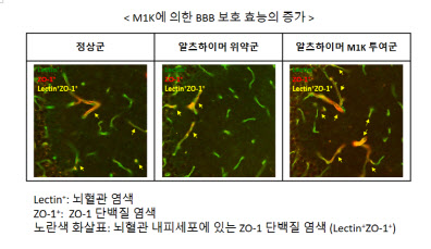 엔솔바이오는 최근 M1K가 혈관 보호 작용으로 혈액뇌장벽(BBB, Blood-Brain Barrier)을 안정적으로 유지하는 효과를 추가로 확인한 것으로 알려졌다. 중등도 인지장애 알츠하이머병 동물모델인 Tg2576 마우스에 M1K를 장기 투여한 임상 결과다.