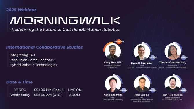이번 웨비나는 “MORNING WALK: Redefining the Future of Gait Rehabilitation Robotics”라는 주제로 로봇 보행 재활 분야의 연구 동향 및 임상 적용 사례를 논의하는 자리로 마련됐다.