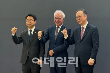 | | 왼쪽부터 박홍배 더불어민주당 국회의원, 피터 샌즈(Peter Sands) 글로벌펀드 사무총장, 권기환 외교부 글로벌다자외교조정관(사진=임정요 기자) |