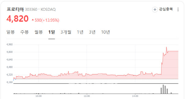 | | 프로티아 주가 현황. (사진=네이버증권 갈무리) |