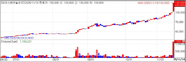 [Kim Jinsoo, Edaily Reporter] On Nov. 14, shares of Seers Technology and DRTECH jumped sharply after both companies posted stronger-than-expected earnings. PeopleBio, which announced a change in its largest shareholder and a transfer of management control the previous day, continued its upward momentum.