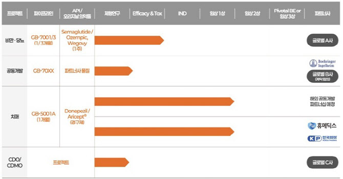 장기지속형 치매치료제 GB-5001A는 2028년 상업화가 예상된다. 회사 관계자는 “미국 식품의약국(FDA)으로부터 허가받은 고분자와 이미 허가돼 출시된 의약품을 기반으로 임상 1상 이후 간략한 동등성 입증 실험(피보탈BE) 또는 곧바로 임상 3상 진입이 가능하다”며 “이런 전략을 통해 2028년 빠른 상업화를 계획하고 있다. 글로벌 빅파마와 기술이전도 추진 중인데 최근 바이오재팬, PODD, CPHI, 바이오 유럽 행사에 참여해 다수 빅파마와 논의를 진행했다. 실사까지 이어지고 있어 CNS 분야에서도 좋은 성과를 예상하고 있다”고 말했다.