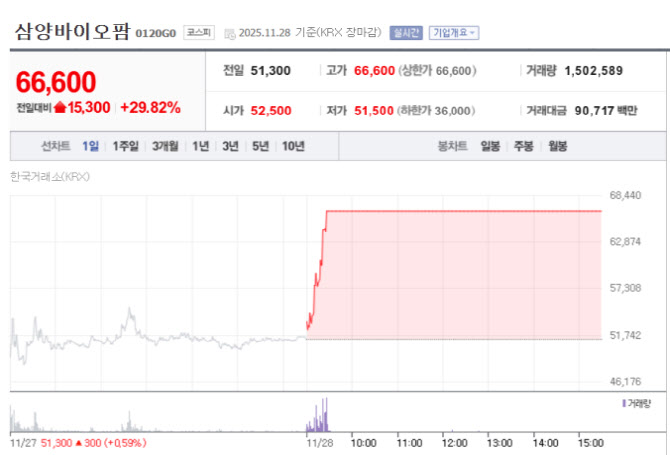 | | Samyang Biopharm stock trend on Oct. 28 (Source: NaverPay Securities) |