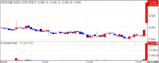 | | 현대약품의 최근 주가 추이. (자료=KG제로인 엠피닥터) |
