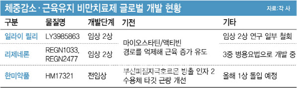 | | 체중감소·근육유지 비만치료제 글로벌 개발 현황. (그래픽=이데일리 김정훈 기자) |