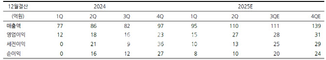 지난해 1분기부터 올 2분기까지 최근 6분기 매출을 보면 77억원 → 86억원 → 82억원 → 4분기 97억원 → 95억원 → 110억원 순으로 꾸준한 증가세를 나타내고 있다. 같은 기간 분기당 영업이익은 12억원에서 27억원으로 수직상승했다.