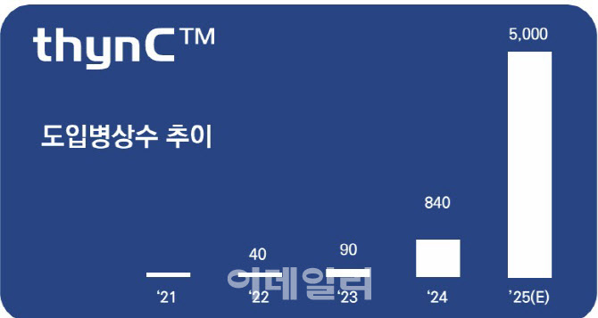 실제로 씽크의 병상 보급률은 폭발적이다. 2021년 서비스를 시작한 이래 2022년 40병상에 보급됐고, 이듬해인 2023년에는 90병상으로 확대됐다. 특히 지난해에는 840병상으로 급증했고, 올해는 상반기까지 3000병상에 설치됐다. 같은 기간 매출도 폭발적으로 증가했다. 2022년 12억원이던 매출은 2023년 19억원, 2024년 81억원으로 증가했고, 올해는 300억원대 매출 돌파가 유력하다. 특히 올해 흑자전환도 예상된다. 지난해 87억원이던 적자는 올해 60억원의 영업이익이 예상된다.