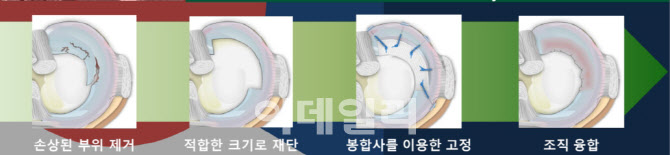 | | 반월상 연골판 이식재의 이식 과정(자료=스트라이커 자료 재가공) |