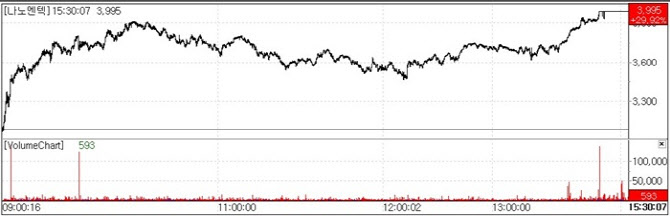 NanoEntek Surges on Debut of High Throughput Cell Analysis Robot NanoEntek shares surged to the daily upper limit, closing at 3995 won, up 29.92 percent(920 won). It marks the stock’s first approach to the 4000won range in about 11 months following a high of 4140 won on Jan. 9.