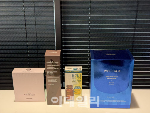 | 블리스팩이 생산한 차바이오텍, 인핸스, 토니모리, 휴젤 제품들(사진=임정요 기자) |