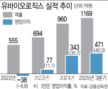 [이데일리 나은경 기자] 백신전문기업 유바이오로직스(206650)가 3분기 누적 1000억원을 넘는 매출을 기록했다. 올해는 사상 첫 1500억원대 연 매출을 기록하는 것도 가능할 것으로 전망된다. 2022년까지만 해도 500억원대에 불과하던 매출이 3년 만에 3배에 가깝게 성장하면서 주목을 받는다.