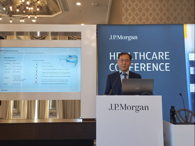 코스피 이전을 진행 중인 코스닥 대장주 알테오젠은 신임 전태연 대표가 JP모건 헬스케어 컨퍼런스 공식석상에 15일(현지시간) 발표자로 섰다. 전 대표는 이 자리를 빌어 알테오젠의 하이브로자임 플랫폼 기술과 빅파마 기술이전 성과를 글로벌 투자자 및 업계 관계자에 소개했다.
