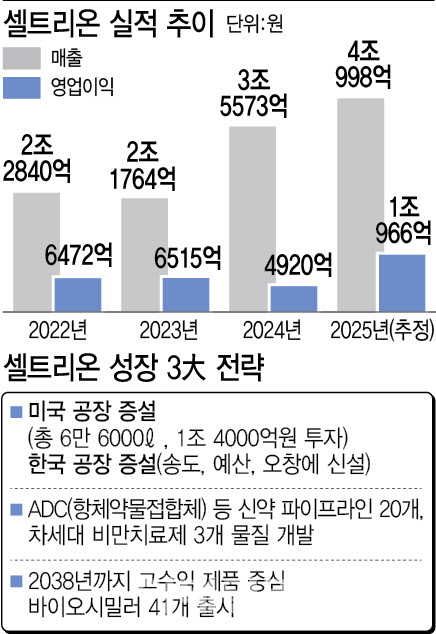 [이데일리 송영두 기자] 셀트리온(068270)이 새로운 도약을 위한 청사진을 전격 발표했다. 기존 미국 생산시설 인수에 이어 한국과 미국 생산시설 대규모 증설과 항체약물접합체(ADC) 및 차세대 비만치료제 개발, 고수익 바이오시밀러 제품 상용화가 핵심 키워드다.