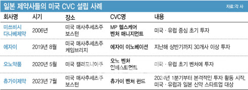 업계 분석에 따르면 일본 제약사는 직접적인 기술도입보다는 기업형 벤처캐피탈(CVC) 설립을 통해 간접적으로 기술에 접근하는 경향이 강하다. 직접 기술을 사오는 것보다는 해외 바이오벤처에 자본을 투자해 파이프라인을 간접적으로 확보하는 전략을 택하고 있다.