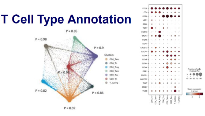그는 “공간오믹스에서는 탈진한 T세포가 왜, 어떤 경로를 거쳐 그렇게 됐는지를 보여준다”며 “탈진한 T세포를 만들고 유지하는 조절하는 매커니즘을 알 수 있다”고 덧붙였다. 공간오믹스는 탈진한 T세포 자체가 아니라 탈진한 T세포를 만들어내는 상위 조절자를 알 수 있단 얘기다.