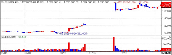 삼성바이오로직스 주가 추이. (사진=KG제로인 엠피닥터)