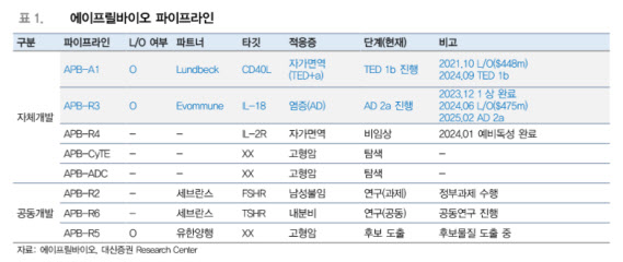 APB-R3 임상 2a상 톱라인 데이터는 올해 1분기, APB-A1 임상 1상 결과는 올해 2분기 최종 업데이트가 예정돼 있다.