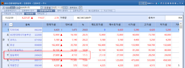 | | 3일 코스피 상승 상위 종목에 일동제약이 6번째로 있다. (자료=KG제로인 엠피닥터(MP DORTOR)) |