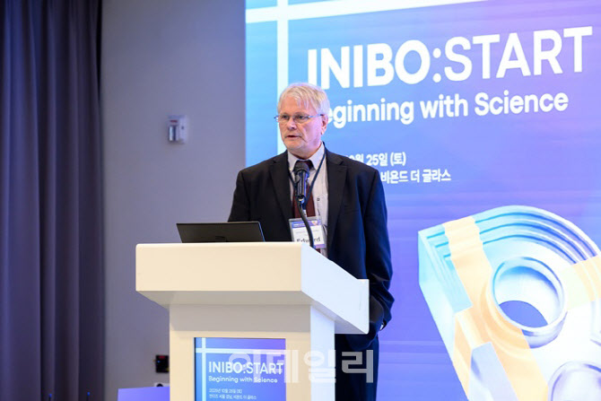 | | 에드워드 무어(Edward Moore) 스웨덴 예테보리 대학교 미생물학 교수가 지난 25일 안다즈 서울 강남 호텔에서 이니바이오 보툴리눔 톡신 ‘이니보’ 론칭 행사에서 발표를 하고 있다.(사진=이니바이오) |