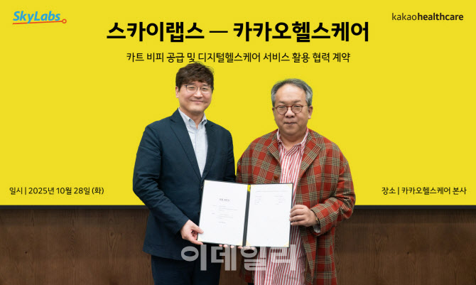 [이데일리 임정요 기자] 카카오헬스케어와 스카이랩스는 반지형 연속혈압측정기 ‘카트 비피’(CART BP) 공급 및 디지털 헬스케어 서비스 협력을 위한 본계약을 체결했다고 29일 밝혔다. 카카오헬스케어의 모바일 및 AI 기술력과 스카이랩스의 생체신호 측정 기술을 결합해 디지털 헬스케어 서비스를 제공한다는 목표다.