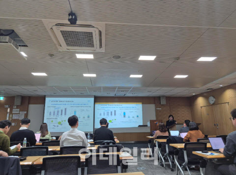 | | 지난 5일 오후 서울 영등포구 금융투자교육원에서 열린 기업설명회(IR)에서 정수현 이수앱지스 부사장이 신약개발전략을 발표하는 모습(사진=이데일리 나은경 기자) |